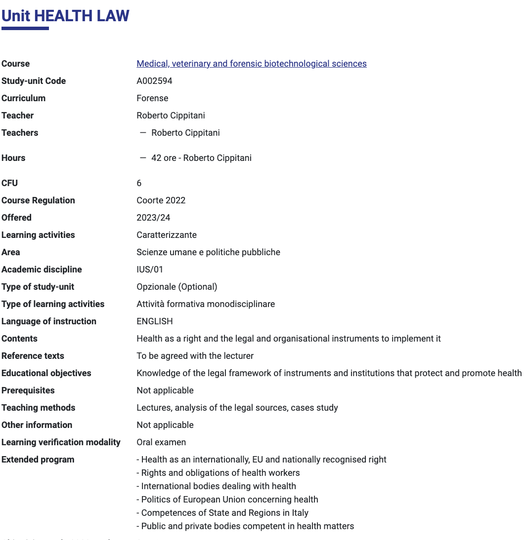 Main courses within the Chair